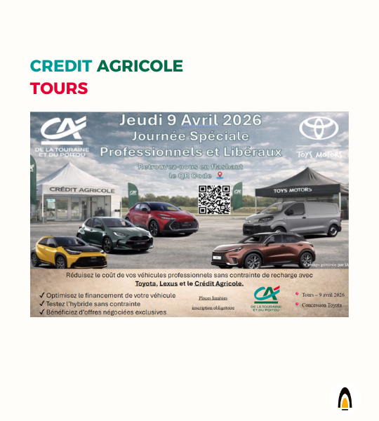 Du 09 au 25/04 2026 : Toyota Lexus s’associe au Crédit Agricole de Tours pour une offre à destination des professionnels et libéraux.